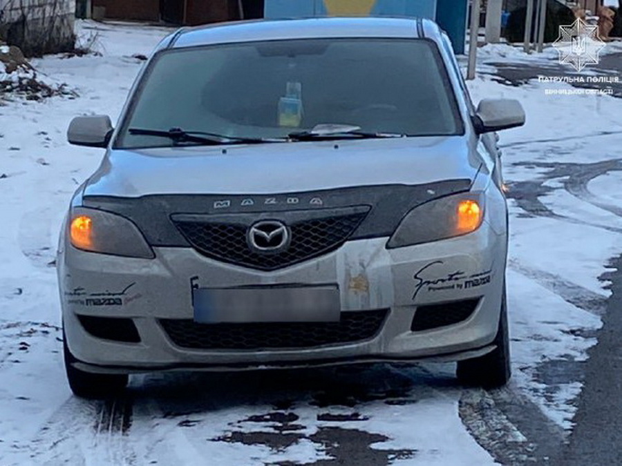 Патрулюючи автодорогу М-30, вчора, біля села Якушинці, інспектори помітили автомобіль Mazda 3, що рухався з порушенням. Поліцейські зупинили транспортний засіб.