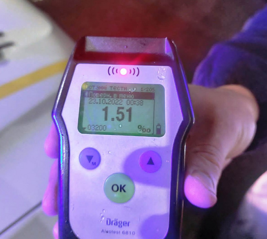 Водійці запропонували пройти перевірку на спецприладі Drager. Алкотестер показав, що в організмі жінки 1,51 проміле алкоголю.