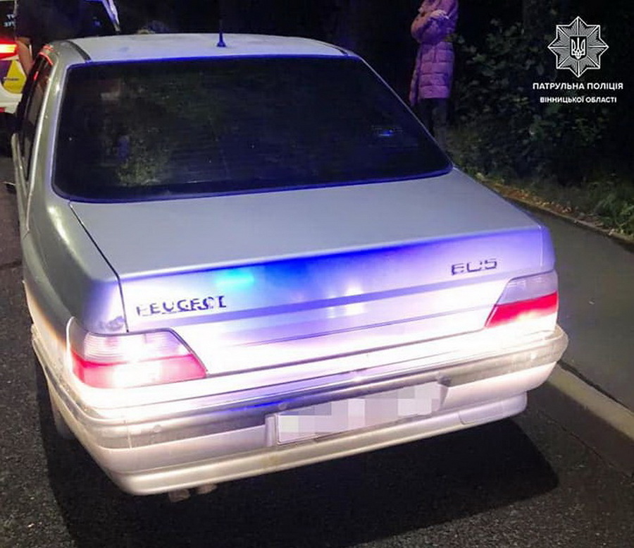На Гніванському шосе ввечері патрульні помітили автомобіль Peugeot 605, який порушив ПДР. Інспектори зупинили транспортний засіб.