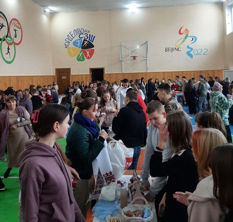 На кілька годин спортивний зал опорного закладу загальної середньої освіти-ліцею з дошкільним підрозділом с. Корделівка перетворився на веселий та жвавий вулик, де смачно пахло духмяною випічкою та різними смаколиками. Викладачі, учні ліцею та жителі Корделівського старостинського округу провели у стінах ліцею благодійний ярмарок на підтримку Збройних сил України.