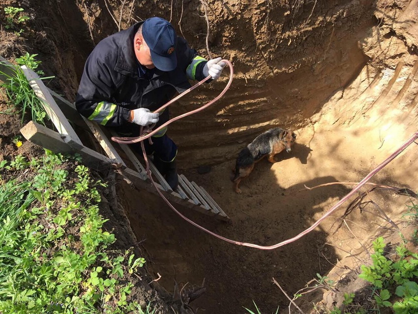 Бійці Служби «101» за допомогою мотузок підняли хвостатих догори, а потім, спустившись по драбині, витягли і їжака.