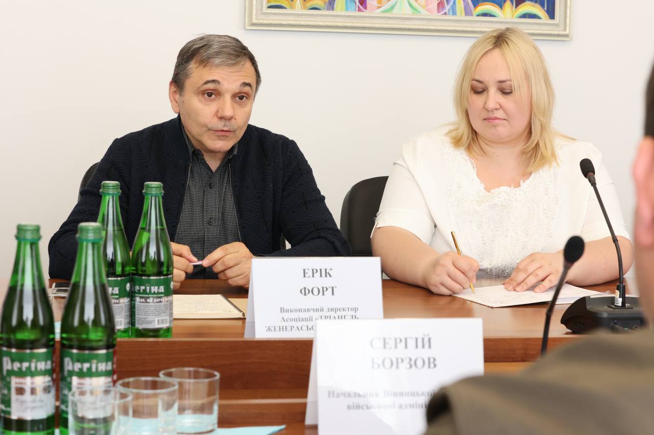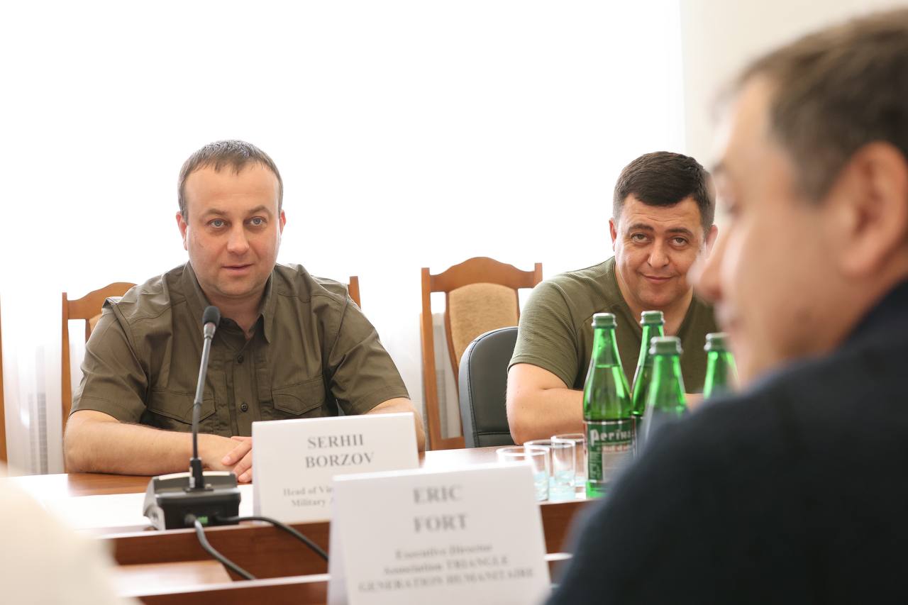 Зустріч з виконавчим директором Міжнародної організації солідарності Асоціації Triangle Generation Humanitaire (Французька Республіка) Еріком Фортом та його асистентом Юрієм Кожушко проходила у приміщенні Вінницької обласної військової адміністрації.