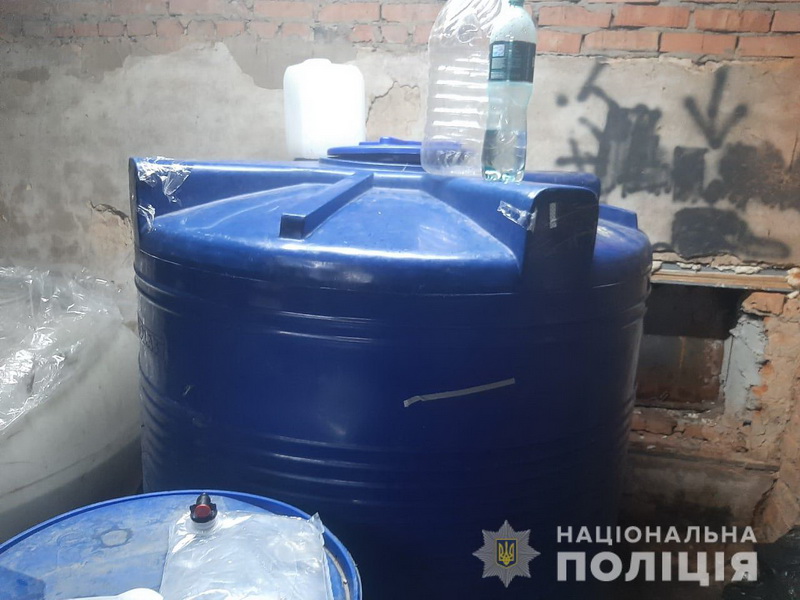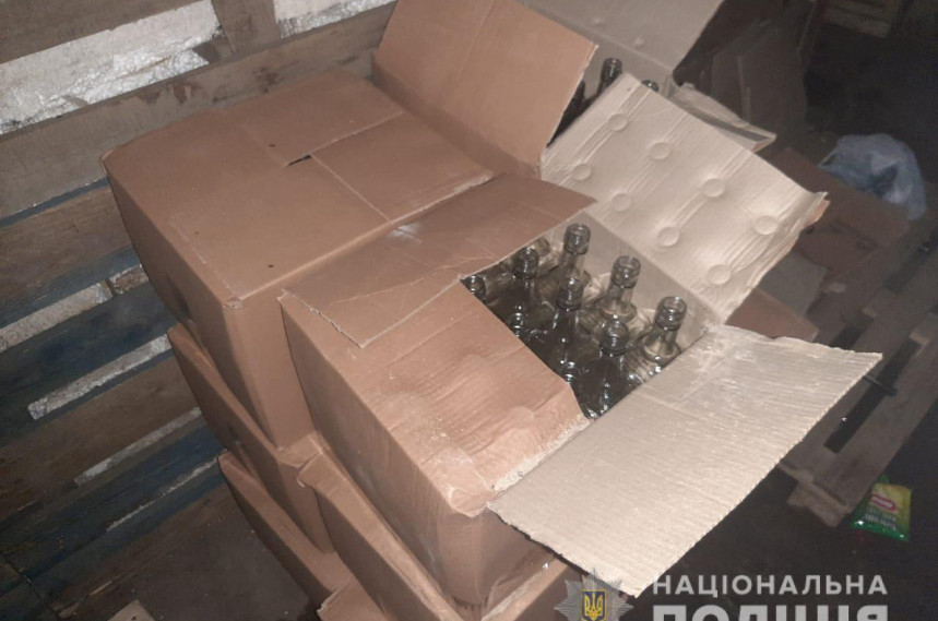 Під час огляду приміщення вилучено близько 1 тони спиртовмісної продукції, 70 пластикових пляшок ємністю по 1,5 л, 50 тетрапаків по 3 л, обладнання для виготовлення алкогольної продукції, пусту тару, корки тощо.