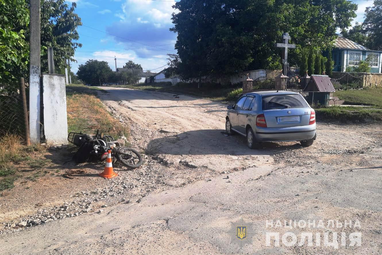 Попередньо встановлено, що під час повороту ліворуч водійка легковика не надала перевагу в русі мотоциклу, який їхав у зустрічному напрямку.