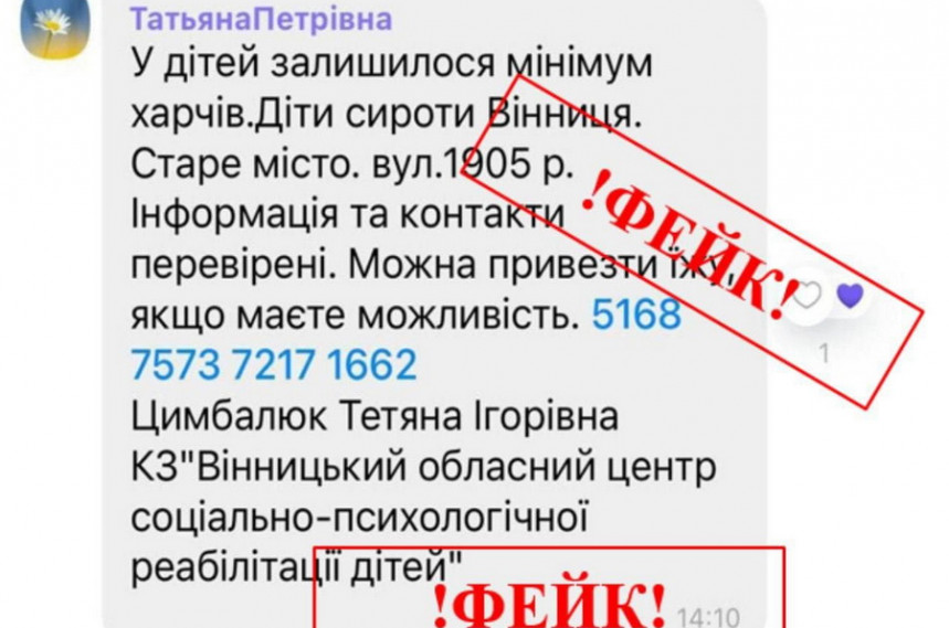 У соціальних мережах Вінниччини стрімко поширюється інформація, що дітям-сиротам, які перебувають в Центрі соціально-психологічної реабілітації, потрібна допомога. Людей застерігають, що це черговий ФЕЙК.