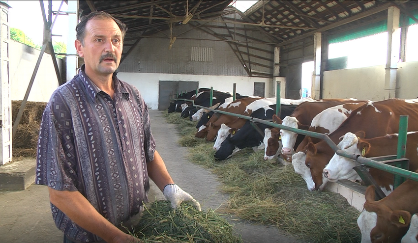 На фермі кожен день схожий на пройдешній. Після ранішнього доїння та короткого відпочинку працівник ферми Петро Степанович підгодовує підшефних йому корів екологічно-чистими кормами, які вирощують поруч на полях.