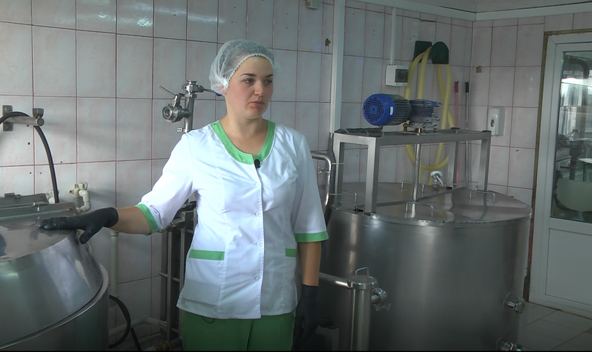 «Оскільки молоко надходить порціями, воно охолоджується до температури 4-6 градусів. Зараз тут є молоко, температура його 4 цілих і 6 десятих», - показує електронний вимірювач температури Юлія Храновська, технолог виробництва.