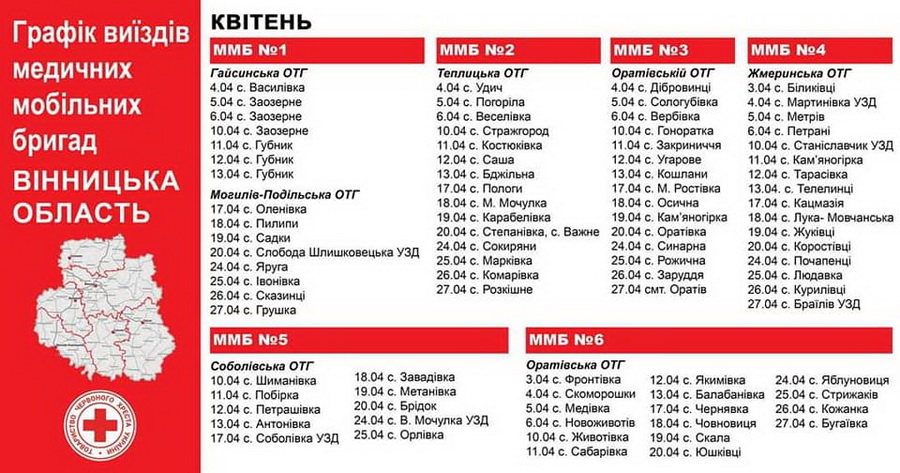 У Вінницькій області працюють команди мобільних медичних бригад Червоного Хреста. Фахівці організації надають безкоштовні консультації мешканцям населених пунктів регіону.