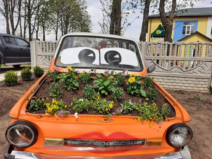 Окрім того, що зовні «Запорожець» облаштований під клумбу, в середині зберігся салон, у який можна зайти.