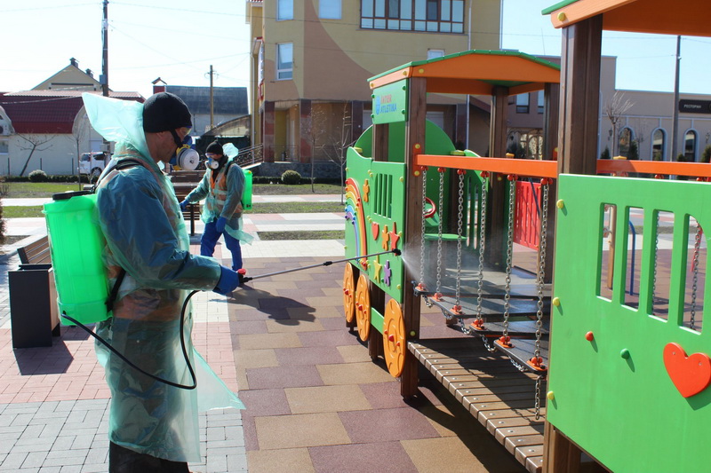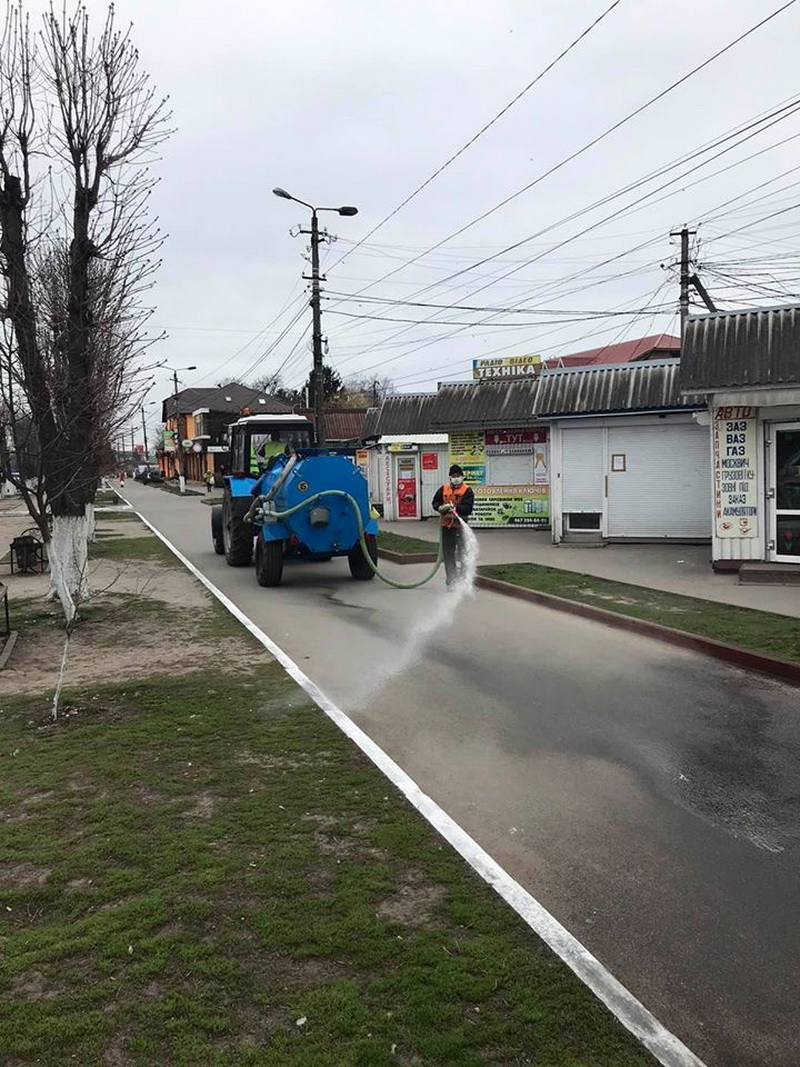 30 березня працівники КП «Благоустрій міста Калинівка» за допомогою спецтехніки продезінфікували безпечним для людей дезрозчином тротуар по вул. Незалежності. Також співробітники КП «Житловик» спільно з КП «Благоустрій міста Калинівка» завершили санітарну обробку багатоквартирних будинків №1, 2, 3, 4 по вул. Сальницька. В рамках цієї роботи вони здійснили профілактичну дезінфекцію у під’їздах, а також обробили дезінфікуючим засобом лавки, урни та дитячий майданчик на прибудинковій території.