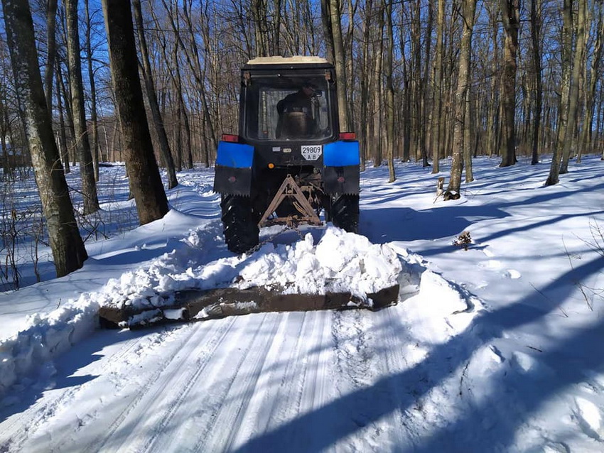 На сьогодні лісівники прогортають під’їзди до підгодівельних майданчиків, годівниць, солонців, щоб тварини не втрачали зайвих сил. Для розгорнення снігу використовують власну техніку лісгоспу, удосконалену спеціальним трикутником для руйнування крижаної кірки.
