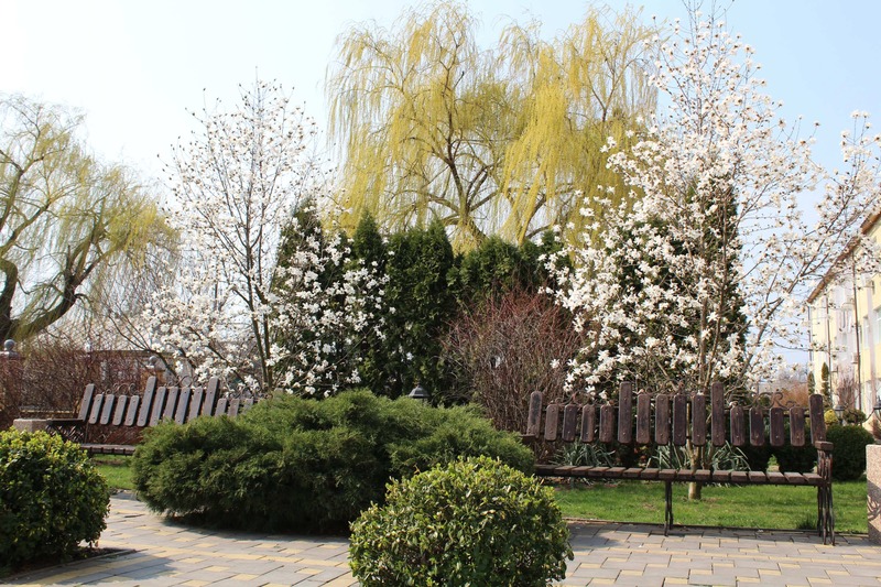 Коли потеплішає, в селі розпустяться ще й сакури. Загалом в Ольгополі одночасно квітнуть до півсотні дерев магнолії. Їх дбайливо доглядають працівники господарства – обприскують дерева від шкідників, підстригають та поливають, коли спекотно.