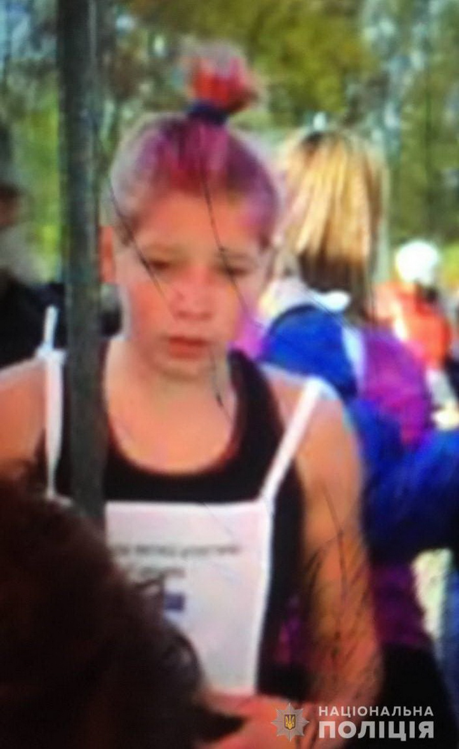 Прикмети зниклої: зріст 150 см, волосся коротке рожеве. Була одягнена в сірий сверт, чорні спортивні штани з білими вставками та світлі кросівки.