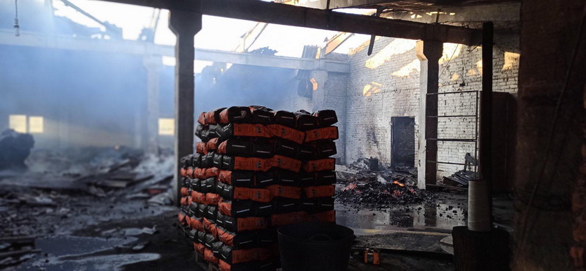 «Прибувши до місця виклику, особовий склад державної пожежно-рятувальної частини №5 встановив, що вогнем охоплено дах ангару з деревним вугіллям.