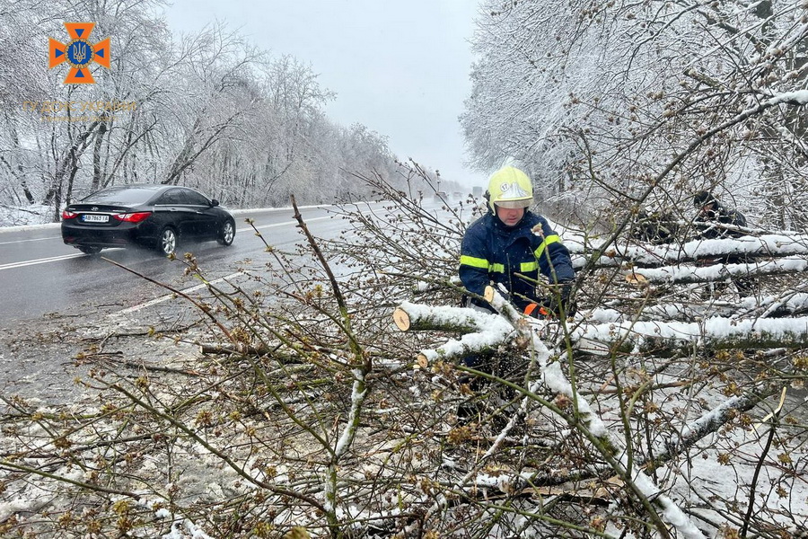 Рятувальники Вінниччини продовжують оперативно ліквідовувати наслідки негоди, які спричинені налипанням мокрого снігу.
