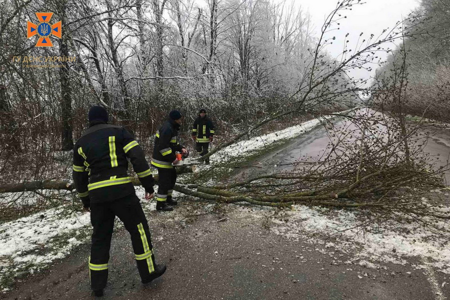 «5 квітня бійці ДСНС на автошляхах с.Ясенки-Вахнівка Липовецької ТГ та М-12 селища Вороновицяприбрали повалені дерева (розкрижувавщи стовбури дерев), які впали на проїжджі частини автошляхів, унеможлививши рух транспорту на даних ділянках доріг.