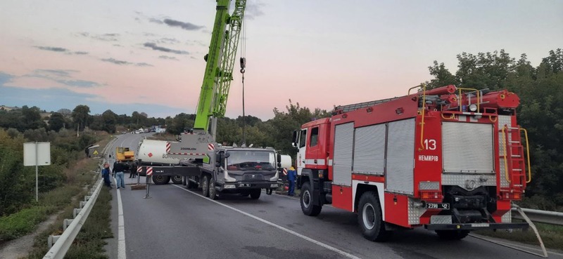 Встановлено, що водій вантажного автомобіля VOLVO не впоравшись з керуванням, виїхав на зустрічну смугу та допустив зіткнення з автоцистерною VOLVO. Водій останнього авто з'їхав з дороги та автоцистерна перевернулася.