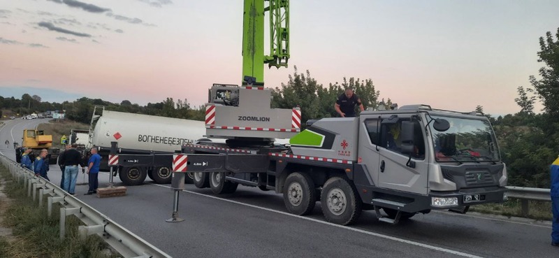 Для підняття автоцистерни з кювету був залучений спеціальний автокран Zoomlion аварійно-рятувального загону спецпризначення ГУ ДСНС України у Вінницькій області.