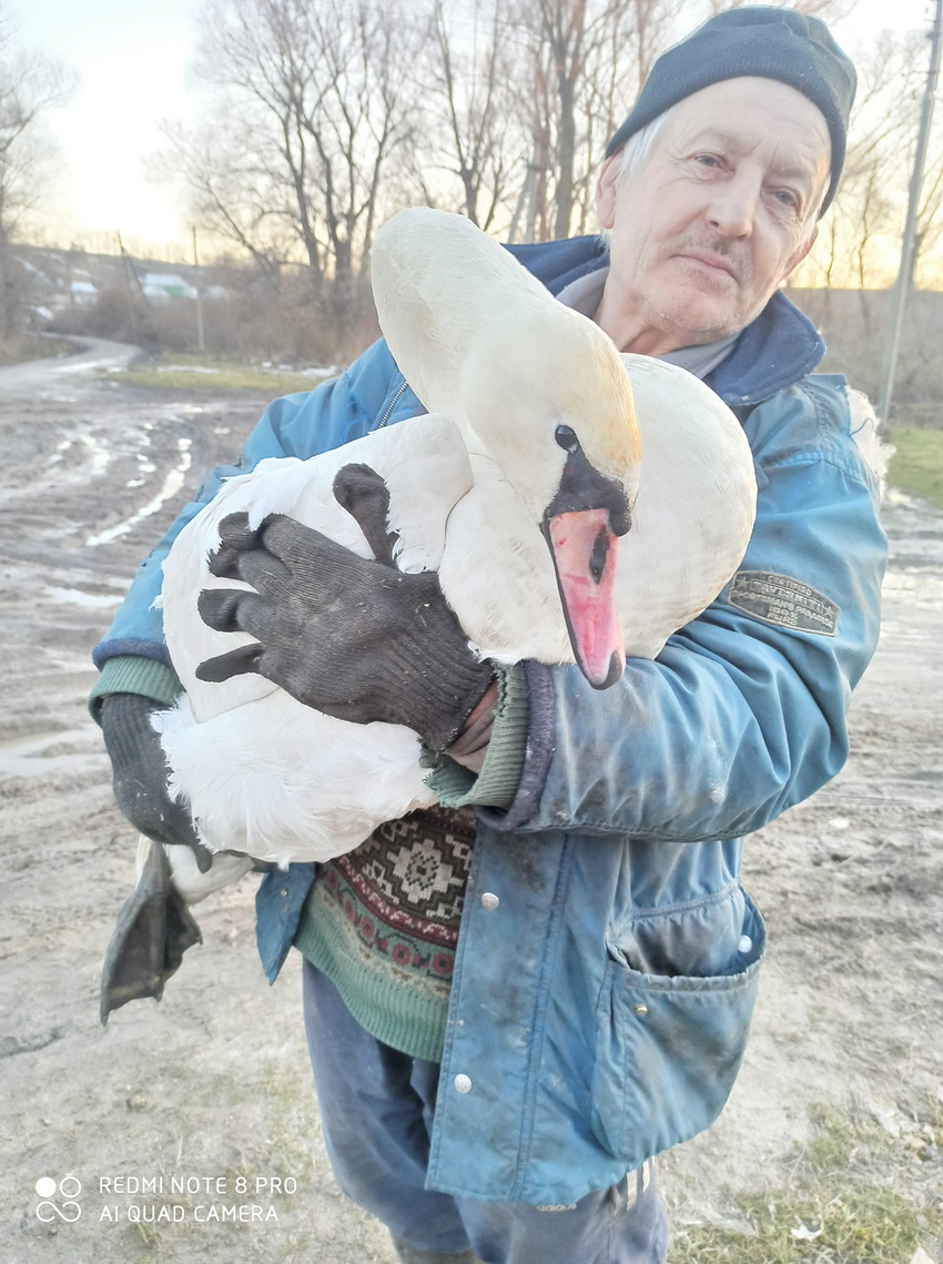 «Відгодував, відігрів. Дзьоба вилікував. І коли лебідь вже зміг ходити, вирішили його відпустити на ставок. Але, вже з протилежного боку. Подалі від «місцевих» лебедів», - продовжує Ольга.