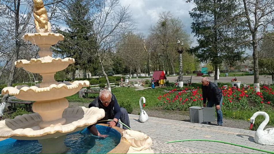 В одному з сіл на Вінниччині запрацював фонтан у місцевому парку. До його роботи долучилися вимушені переселенці, які прибули до населеного пункту з різних міст, де тривали та продовжують проводитись бойові дії.