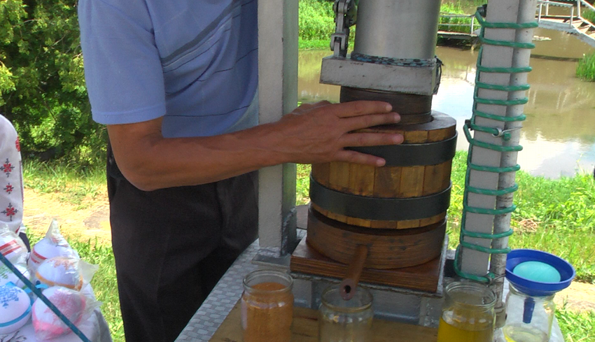 «Кладемо насіння у діжечку, кладемо поршень. А далі домкратом, за дідовським методом, давимо. І так, по краплинці воно скапує, віджим триває дуже повільно. Але, така олія найцінніша», - пояснює Павло Швець.
