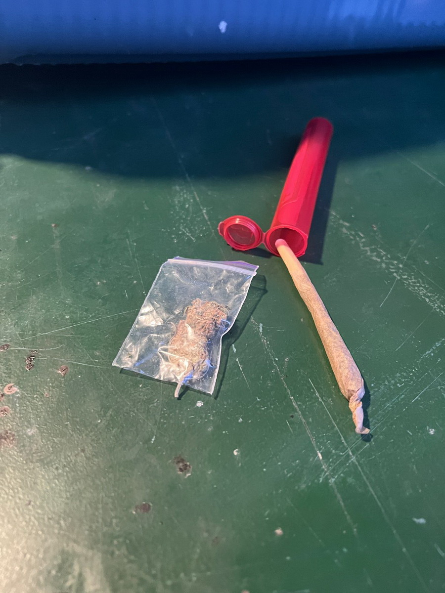 В результаті огляду речей, спільна оглядова група виявила пластиковий тубус та згорток заповнені речовиною сіро-зеленого кольору рослинного походження.