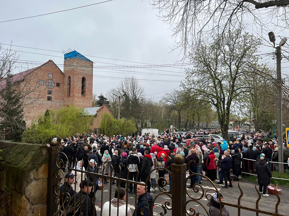 На святкову службу зібрались сотні місцевих жителів, які не захотіли йти до церков УПЦ, які приналежні до московського патріархіту.