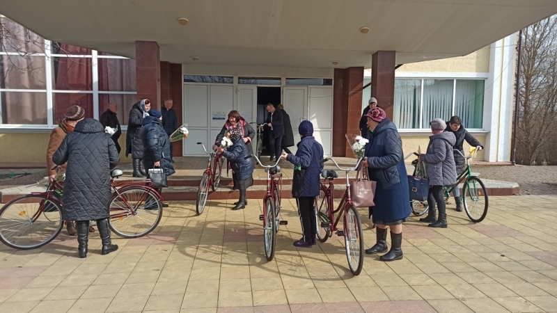 Сільський голова Микола Савченко, голова Гайсинської районної ради Віталій Савчук та директорка КЗ «Центр надання соціальних послуг» Ірина Малик передали десять велосипедів: один – фахівцю з соціальної роботи, дев’ять – соціальним працівницям із сіл Ольгопіль, Демівка, Любомирка, Стратіївка, Берізки-Чечельницькі.