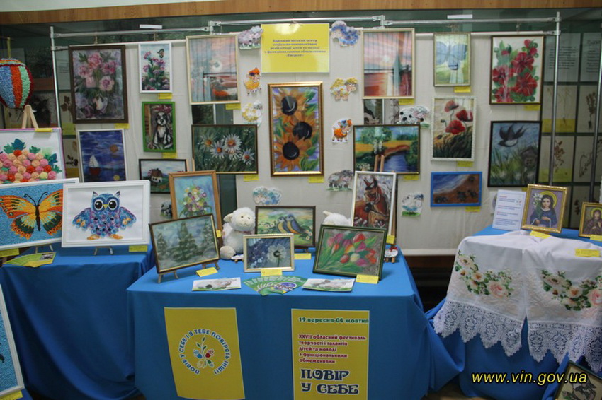 19 вересня на Вінниччині стартував ХХVІI обласний Фестиваль творчості і талантів дітей та молоді з функціональними обмеженнями «ПОВІР У СЕБЕ». Триватиме два тижні – до 4 жовтня. Цьогоріч участь у ньому беруть 120 обдарованих дітей та молоді з функціональними обмеженнями з 23 районів, 5 міст обласного значення та 2 ОТГ. Вони підготували більше 500 робіт, виконаних різними техніками.