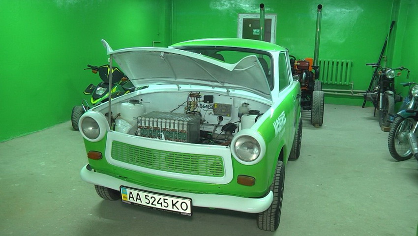 «Перед вами перший переоснащений автомобіль, легендарний німецький «Трабант». Переоснащений під електричну тягу», - директор коледжу Кібітлевський виходить із салону переоснащеного авто й каже, що у цьому навчальному сезоні випускники вже будуть працювати над мультимедійним наповненням в салоні і навігаційною системою.
