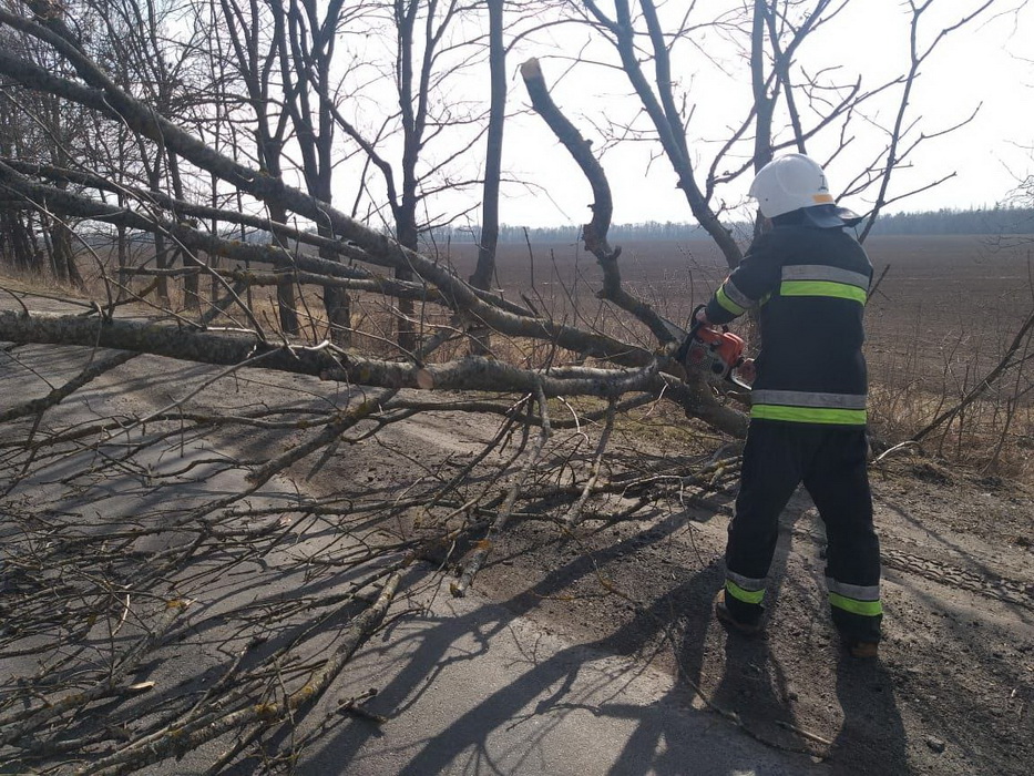 «О13:45 до Служби порятунку “101” надійшло повідомлення про те, що поблизу с. Івча Літинської територіальної громади, внаслідок сильного пориву вітру, на проїжджу частину дороги впало дерево та перегородило рух автотранспорту. Прибувши до місця події, рятувальники розкряжували стовбур дерева та звільнили рух автомобілістам», - повідомляють у ГУ ДСНС України у Вінницькій області.