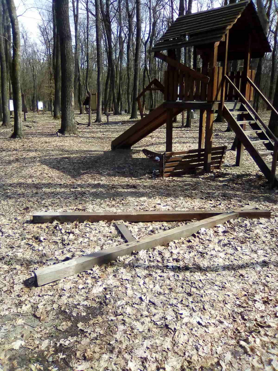 У Бершадському лісгоспі невідомі потрощили зону відпочинку. Вони поламали дитячу гірку, гойдалку, вибили двері вбиральні і залишили багато сміття.