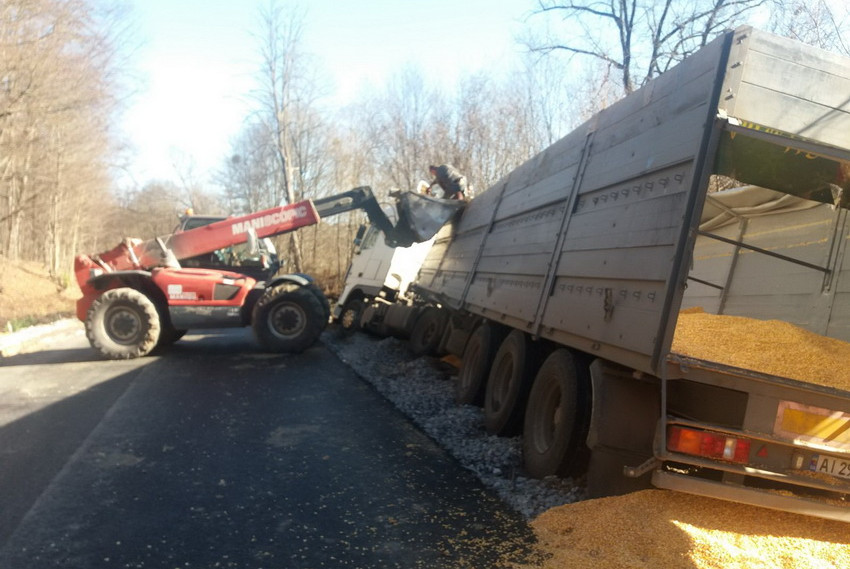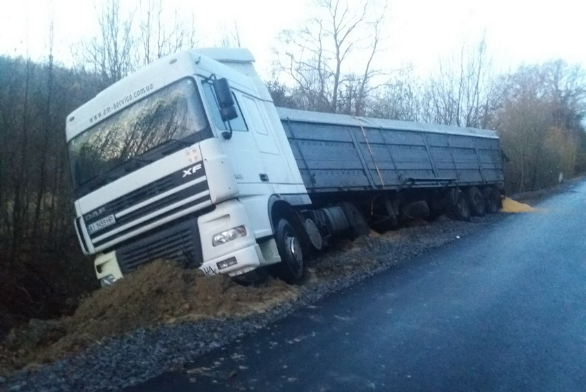 Відомо, що 32-річний водій DAF не впорався з керуванням і з’їхав з дороги у кювет. У причепі транспортного засобу знаходилося 30 тонн кукурудзи. Бійці Служби «101» за допомогою бензорізів зробили отвір у причепі, щоб дістати з середини зерно.