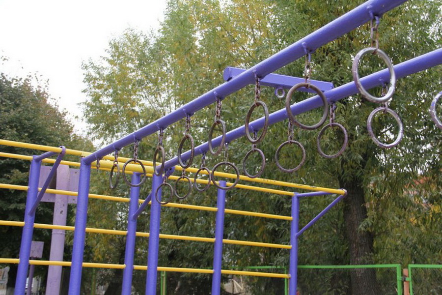 На спортивному майданчику розміщено та облаштовано спортивні знаряддя та елементи – турнік, бруси, шведська стінка, координаційна лінія, лавочка. Також створено вільний простір для тренувань без знаряддя.