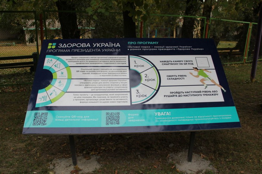 Такі спортивні майданчики пристосовані не лише для молоді, а й для людей старшого віку, тож кожен має можливість обрати свій рівень складності тренувань. Кожен «Активний парк» області має необхідне обладнання з QR-кодом, просканувавши який, можна переглянути відеоуроки з вправами у виконанні відомих особистостей, політиків, діячів культури, представників шоу-бізнесу та видатних спортсменів.