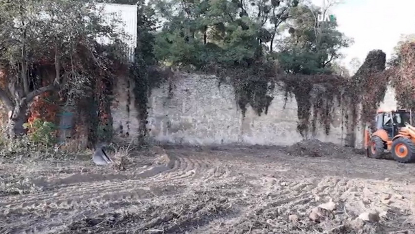 Виконавець робіт Євген Ткач показує фото будинку ірландського садівника Деніс Макклера. Будівля без даху, з однією стіною. Так будівля виглядала до 2019 року.