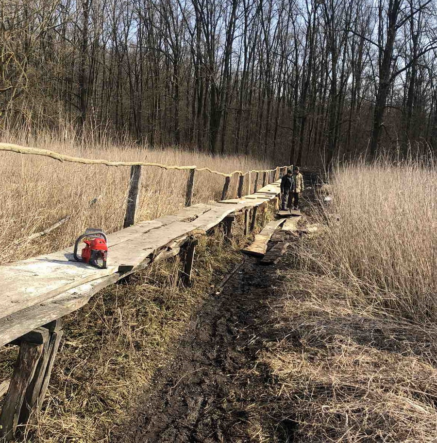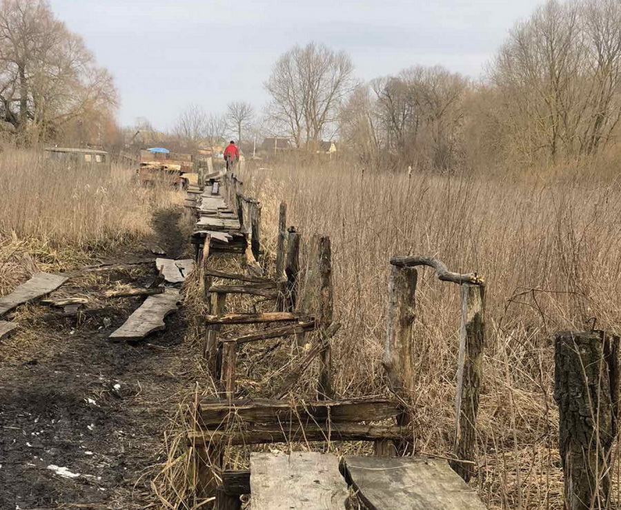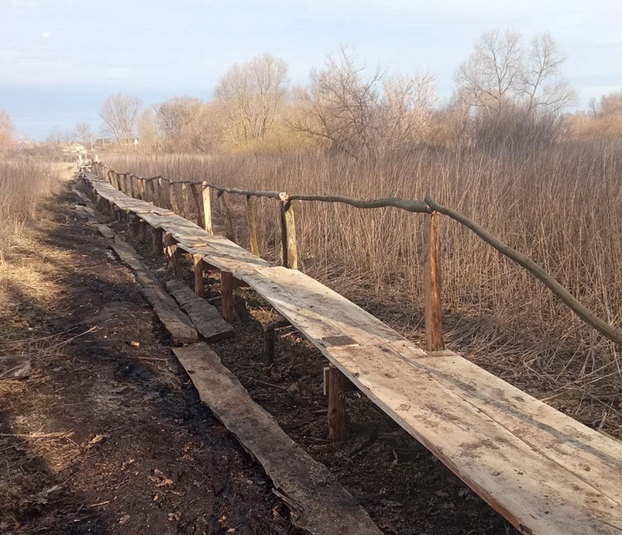 «Цей місток стратегічний об’єкт для нашого старостинського округу, - каже виконуючий обов’язки старости Мирненського старостинського округу Василь Бондарець. – Адже багато людей користуються ним, щоб дістатися з одного села до іншого. Люди дістаються на автобус, по інших справах, діти – в школу. Неподалік є ліс, то й до нього шлях пролягає через цей місток. Щороку ми намагаємося по можливості відремонтувати міст, бо бували випадки, що його палили, зривали дошки, доводилося щоразу шукати можливість відремонтувати. Протяжність моста десь триста метрів, тому будівництво металевої чи бетонної кладки сільська рада не могла осилити, бо потрібні були проєктна документація, кошти. Тому усі ці десятиліття ремонтували кладку власними силами».