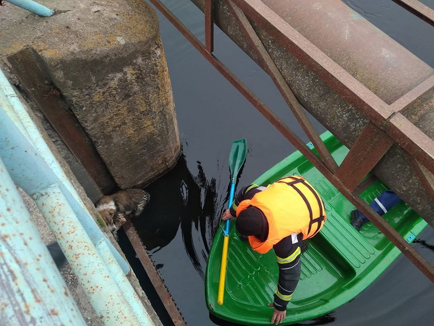 Місцеві жителі помітили переляканого хвостатого, який передніми лапами тримався на частину переправи, і покликали на допомогу бійців ДСНС.