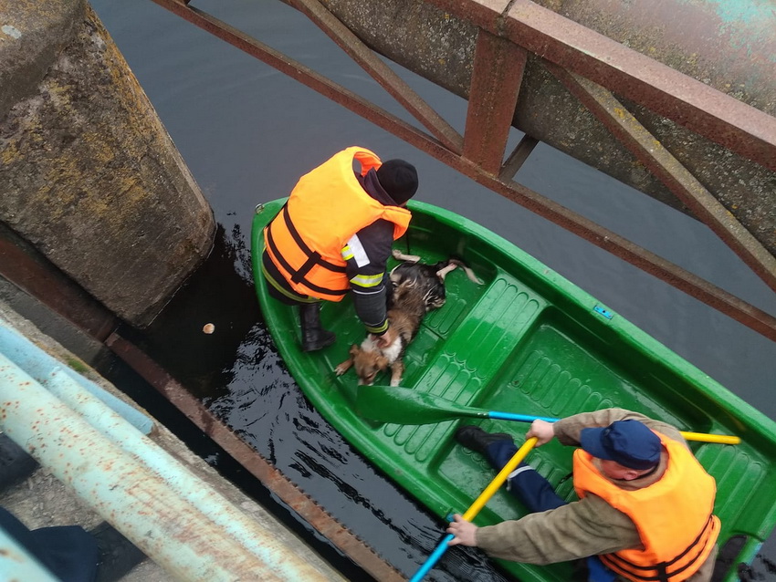 У місті Бар, що на Вінниччині,працівники Служи «101» врятували собаку, що впав з мосту у річку Рів.