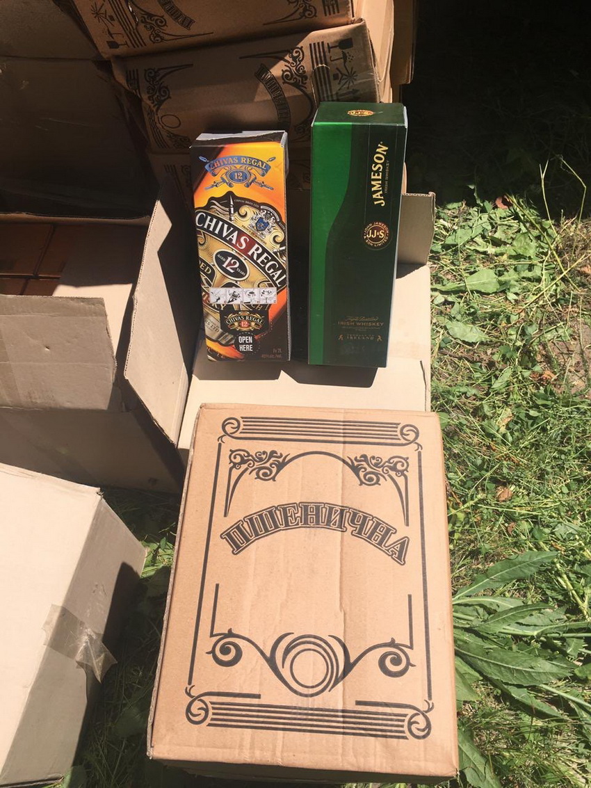 Під час проведення обшуку виявлено та вилучено 1100 л готової фальсифікованої алкогольної продукції, розфасованої в упаковки з маркуванням торгових марок відомих світових брендів.