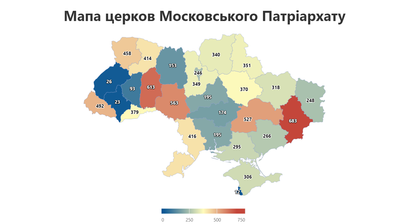 Відповідне дослідження опублікував Опендатабот за даними з Реєстру церков московського патріархату.