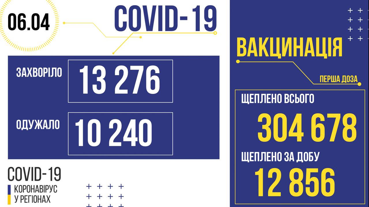Ситуація з поширенням коронавірусу в Україні загалом не покращується -  за минулу добу 13 276 нових випадків інфікувань. Одужали минулої доби 10 240 людини, померли 430 людей. За добу щеплено 12 856 осіб.