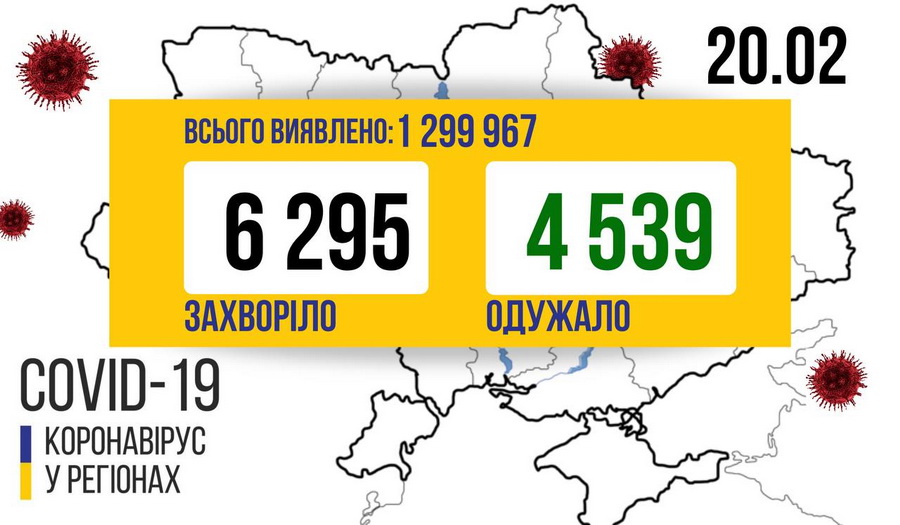 Загалом по Україні – 6 295 інфікування за минулу добу, одужали 4 539 людей. Померли – 73.