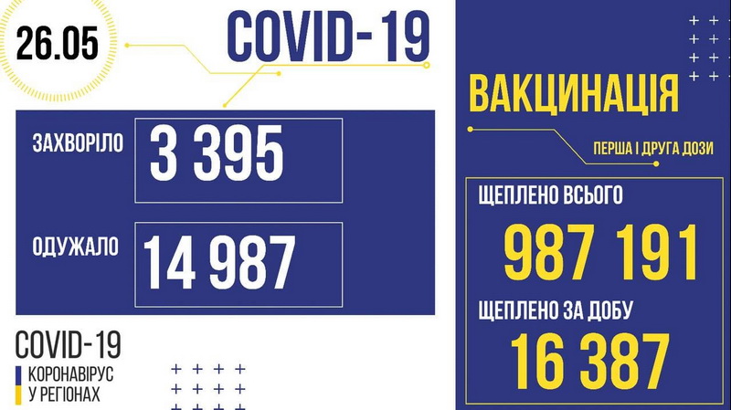 У Вінницькій області, станом на ранок 26 травня, виявили 97 нових випадків захворювання на коронавірус. За добу померло 4 пацієнтів. Одужали – 485. В регіоні вчора провели 511 вакцинацій.