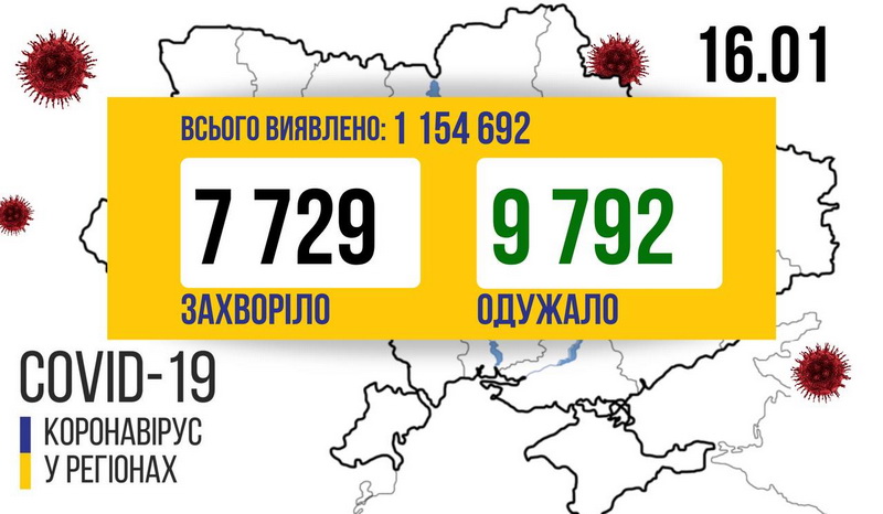 За даними РНБО, станом на ранок 16 січня у Вінницькій області зафіксували 228 нових випадків захворювання на коронавірус за добу, одужали – 325 мешканців області. Загалом по Україні 7 729нових випадків за добу, одужали 9 792 пацієнтів. Внаслідок ускладнень, викликаних хворобою, минулої доби в Україні померли 144 пацієнти, у Вінницькій області – 5. Загалом, з початку епідемії на Вінниччині від коронавірусу померло 444 людей. Одужали – 19115.