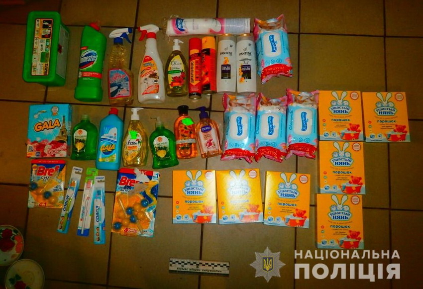Частину викрадених речей поліцейські вилучили під час обшуку орендованого зловмисниками будинку. Крім цього, в помешканні затриманих працівники поліції виявили побутову хімію, техніку, тютюнові вироби та продукти харчування, викрадені з торгівельних закладів.