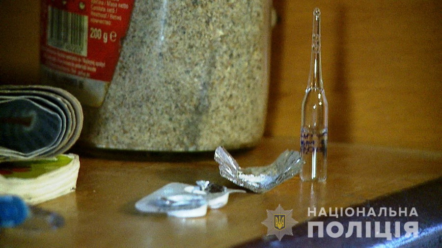 Під час проведення санкціонованого обшуку у затриманого вилучили таблетки метадону, медичні ампули з невідомою рідиною та порошкоподібну речовину, схожу на амфетамін.