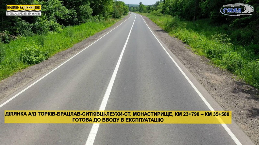 У Брацлавській територіальній громаді у рамках програми Президента України Володимира Зеленського «Велике будівництво» відремонтовано 11,79 км дороги О-02-21-05 Торків-Брацлав-Ситківці-Леухи-ст. Монастирище, яка проходить через місто Брацлав, село Грабовець та село Семенки.