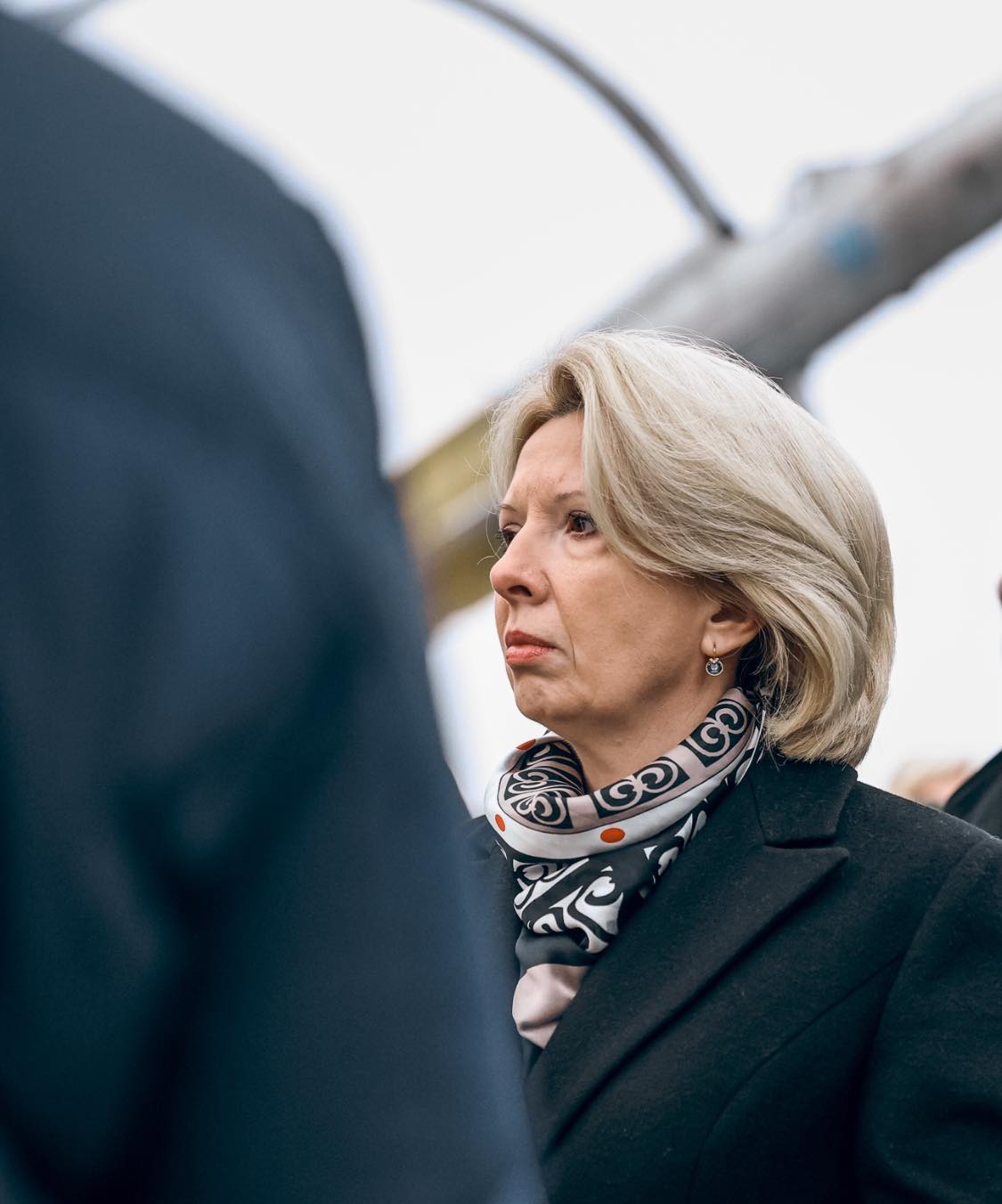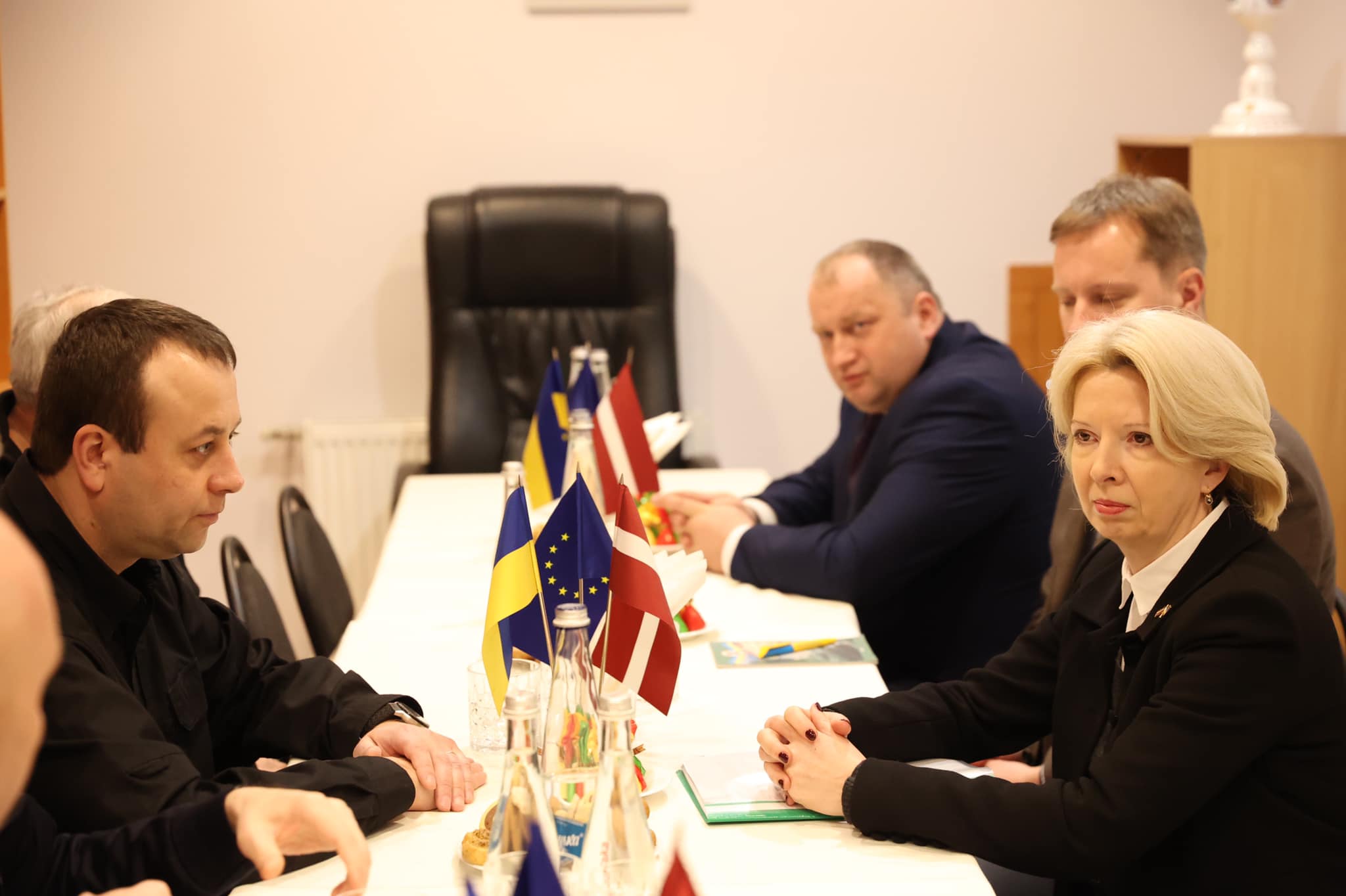 До Вінниці з робочим візитом прибула міністр оборони Латвійської Республіки Інара Мурнієце. Це її перший візит до України після призначення на посаду.