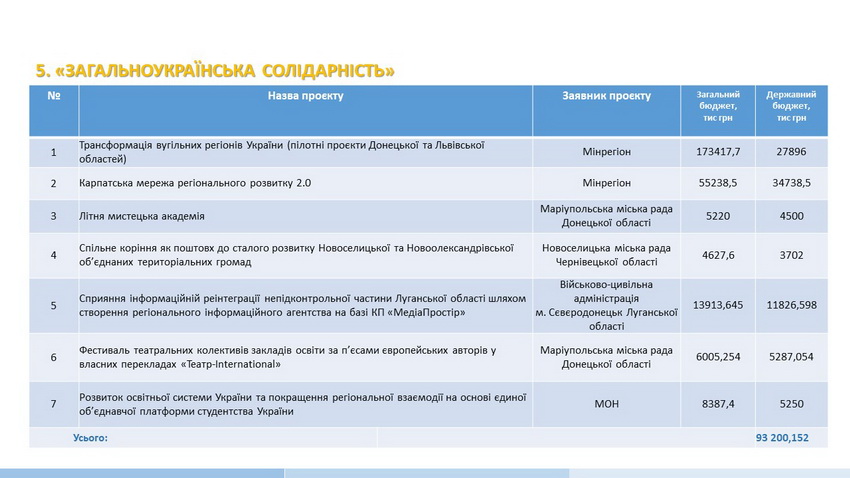 Повний перелік проектів-переможців другого конкурсного відбору: